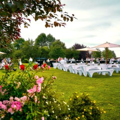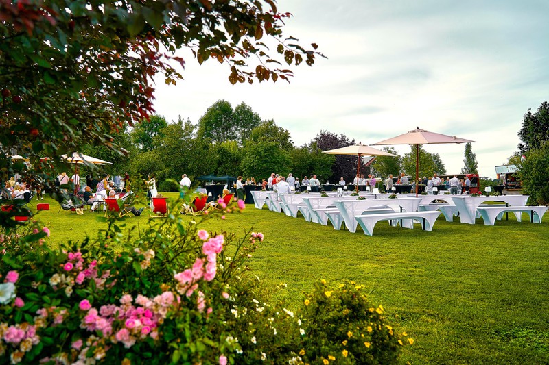 Die Feier fand sowohl im Innenbereich als auch im traumhaft schönen, liebevoll gepflegten Außenbereich statt.